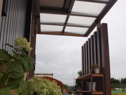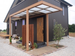 玄関の軒が浅く雨が降ると玄関ホール内まで雨が降込んでしまうお宅でした。雨の降込みを防ぐ為のルーフと、外からの視線を遮る為のスクリーンを設置しながら玄関前をリニューアルさせて頂いたお庭です。